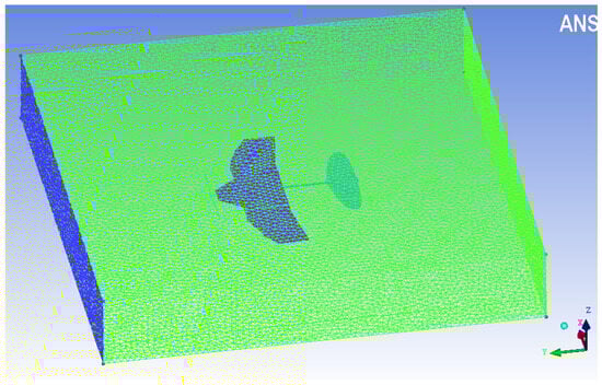 Quantifying the instantaneous deformation on the wing can help determine the direction and magnitude of fluid dynamics generated by inertial and aerodynamic loads [41]. Therefore, it is crucial to simulate the dynamic changes in the airflow around the wing in order to analyze the aerodynamic mechanism of a deformed wing MAV during flight. Based on the literature [39,42,43,44], the size of the computational domain for the deformable wing MAV model is determined. The calculated average chord length of the wing is 0.1 m. Here, the dimensions of the determined computational domain are 0.4 m in length (approximately four times the average chord length), 0.5 m in width (approximately five times the average chord length), and 0.3 m in height (approximately three times the average chord length). ANSYS ICEM-CFD software is used for meshing geometric models.