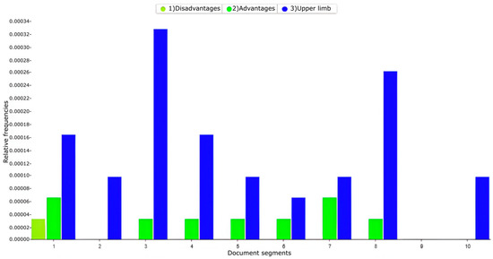 Figure 2 presents a graph of the relative frequency with which studies that address the advantages and disadvantages in general of the use of upper limb exoskeletons are evidenced. Studies of the SCOPUS database have been obtained with the following text string: (“upper limb” OR “arm” OR “forearm” OR “hand”) AND (“exoskeleton” OR “wearable” OR “robotic” OR “assistive”) AND (“industrial” OR “workplace” OR “manufacturing” OR “factory”) AND (“workers” OR “ employees” OR “operators” OR “laborers”) AND (“ergonomics” OR “safety” OR “performance” OR “fatigue”) AND (“rehabilitation” OR “support” OR “augmentation” OR “enhancement”).