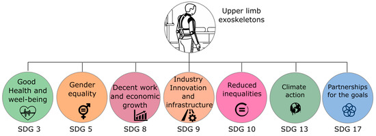 Contributions of upper-limb exoskeletons to the execution of the Sustainable Development Goals (SDGs).