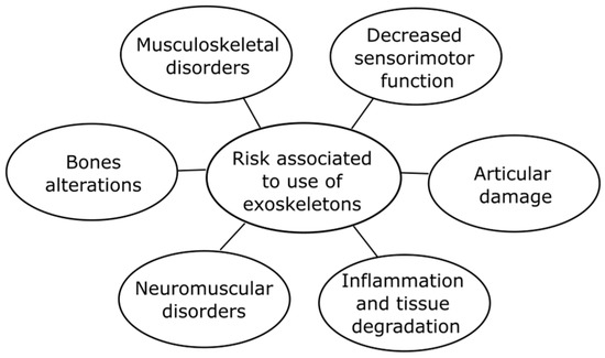 Evaluations of upper-extremity exoskeletons have identified several risks associated with their use. These risks are mainly related to increased muscle activity, mobility restrictions, load transfer, improper posture, and an unbalanced distribution of the center of mass in the user-exoskeleton system.