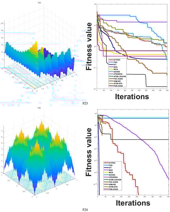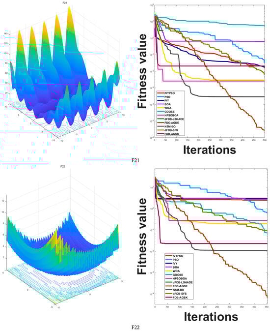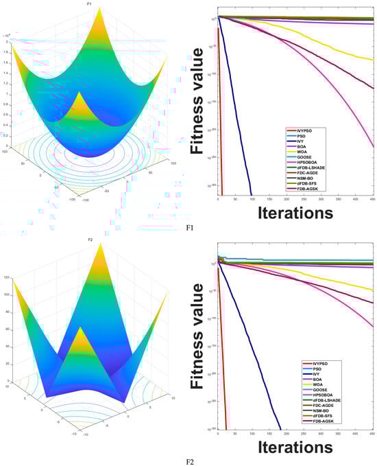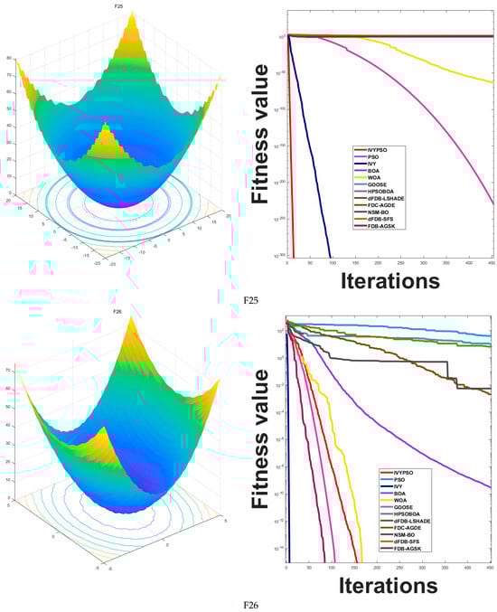 - A comprehensive experimental evaluation was conducted on 26 standard benchmark functions and three constrained real-world engineering design problems. The performance of the proposed IVYPSO algorithm was compared against eleven advanced metaheuristic optimization algorithms, including classical methods (such as PSO, IVY, BOA, WOA, and GOOSE), as well as recently developed hybrid algorithms from high-quality research studies (including HPSOBOA, FDC-AGDE, dFDB-LSHADE, NSM-BO, dFDB-SFS, and FDB-AGSK). The experimental results demonstrate that IVYPSO consistently outperformed the compared algorithms in terms of optimization accuracy, convergence speed, and robustness.