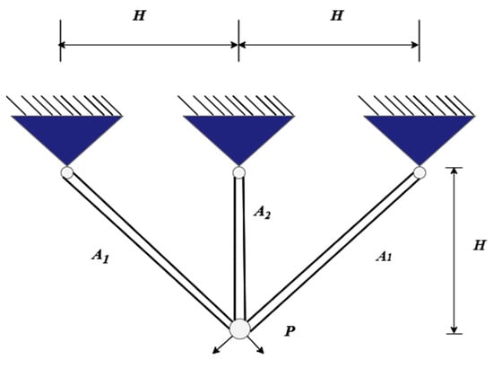 The total mass of the three-bar truss can be expressed by Equation (25):