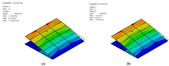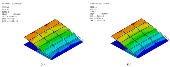 Stress distribution in a VCW at deflection angles of (a) 0° and (b) 2°.