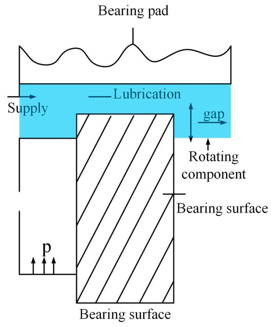 Static pressure thrust bearing. Arrows indicate the flow direction or movement direction.
