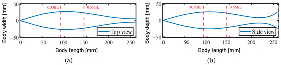 The abstract form of the fish robot. (a) Body width; (b) body depth.