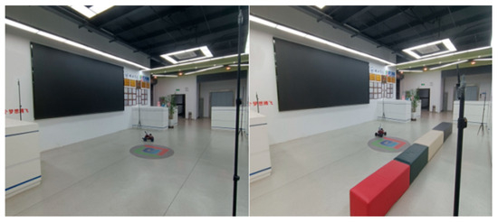Within this environment, the UWB base station offers a stable reference frame for determining the location of the target object. By collaborating with upper-level computer software, we can capture the real-time location of UWB tags, enabling the recording and analysis of indoor positioning data. Figure 4 illustrates the experimental scenario.