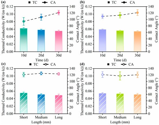 3.5. Water Contact Angle and Thermal Conductivity Analysis