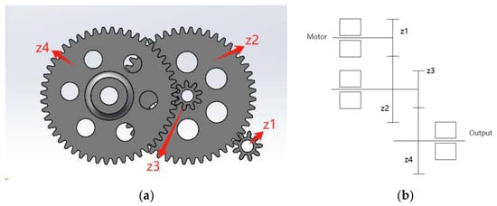 2.2. The Double-Gear Crank–Rocker Mechanism