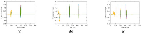 Training synaptic weights; (a) “zero”; (b) “five”; (c) “nine”.