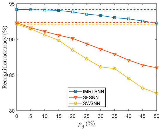To summarize, by comparing the SR accuracy of fMRI-SNNs with and without synaptic plasticity, along with the correlation between the MSW and and , we conclude that the inherent determinant impacting the damage resistance is the synaptic plasticity.