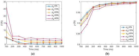 Figure 22 shows that for distinct values of , the dynamics of for fMRI-SNN against stochastic attack present an overall increasing trend, suggesting that the global efficiency of information transfer in the fMRI-SNN decreases as increases.