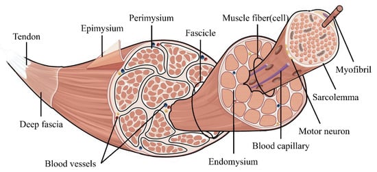 Human muscle movement is driven by the contraction of individual muscle fibers. As illustrated in Figure 1, reproduced from [24], muscles consist of bundles of muscle fibers, with each fiber containing myofibrils. In human physiology, joint stiffness is dynamically adjusted through the selective activation of muscle fibers by the nervous system. This neuromuscular regulation enables muscles to modulate force output and mechanical compliance during movement. Specifically, increased recruitment of muscle fibers surrounding a joint leads to higher joint stiffness, while reduced activation leads to decreased stiffness. This intricate mechanism enables the body to effectively modulate joint stability and flexibility during movement.