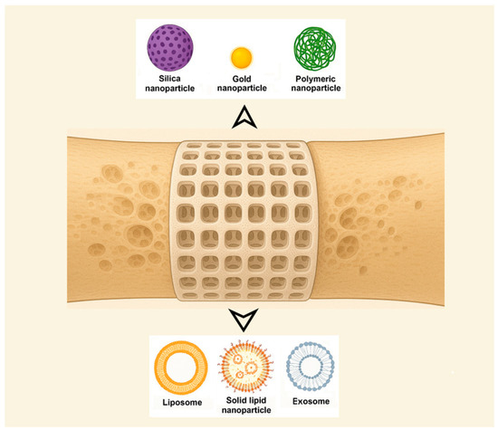 - Hydrogel-based systems. Hydrogels are 3D networks composed of hydrophilic polymers that, through the chemical or physical cross-linking of polymer chains, can retain substantial amounts of water while preserving structural integrity. This architecture enables the encapsulation of therapeutic agents, including nucleic-acid-based drugs, thereby forming a sustained-release reservoir. The release kinetics can be modulated by adjusting the degree of cross-linking within the hydrogel matrix [80]. Injectable hydrogels represent a highly promising approach for localized DDSs in the management of bone-related conditions such as osteoporosis, osteonecrosis, osteoarthritis, osteomyelitis, and osteosarcoma, offering a viable approach for mimicking the topography and properties of the extracellular matrix [95]. The development of advanced smart hydrogels and nanogels that respond dynamically to external stimuli, such as changes in pH or temperature, offers a promising strategy for improving controlled drug release. These materials can undergo reversible structural transformations, thereby enhancing delivery precision and therapeutic efficacy. Furthermore, integrating hydrogels with nanogels may combine their respective advantages. For example, the use of biopolymers can enhance structural stability, mechanical strength, and drug-loading capacity. Incorporating nanoparticles into hydrogel matrices may further improve both mechanical performance and the efficiency of drug encapsulation [96]. Key challenges include ensuring mechanical stability and controlled degradation, achieving precise drug release and optimal bioavailability, and managing immune responses and ensuring biocompatibility, as well as addressing issues related to scalability and reproducibility in production [95]. Polymers can act as carriers that increase drug efficacy and reduce adverse effects by allowing for localized and prolonged drug release. They improve patient compliance by reducing the frequency of drug administration [23]. The ability to release biomolecules at a desired rate will play critical roles in the future development of bone scaffolds [22].