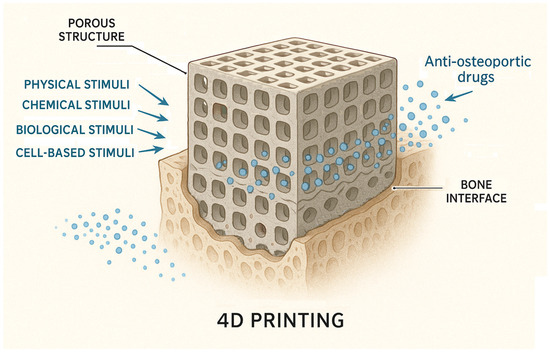 - Prakash, A.; Malviya, R.; Sridhar, S.B.; Shareef, J. 4D Printing in Dynamic and Adaptive Bone Implants: Progress in Bone Tissue Engineering. Bioprinting 2024, 44, e00373. [Google Scholar] [CrossRef]