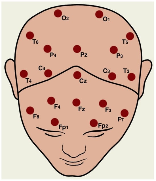 - Homan, R.W.; Herman, J.; Purdy, P. Cerebral location of international 10–20 system electrode placement. Electroencephalogr. Clin. Neurophysiol. 1987, 66, 376–382. [Google Scholar] [CrossRef] [PubMed]