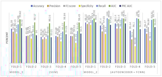 | Model_2 (Autoencoder + FCNN) | Fold-1 Fold-2 Fold-3 Fold-4 Fold-5 | 98.51 97.40 98.14 95.54 96.27 | 97.92 95.36 96.35 92.50 94.44 | 98.60 97.63 98.14 96.10 96.84 | 97.64 94.40 96.35 90.08 92.11 | 99.30 100.00 100.00 100.00 99.35 | 99.92 99.69 99.91 99.78 99.74 | 98.60 97.65 98.14 96.09 96.83 |