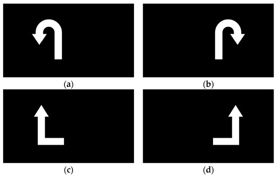 Symbols for four classes of motor imagery states: (a) left leg flexion; (b) right leg flexion; (c) left leg extension; (d) right leg extension.