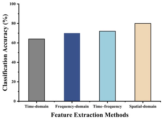 To comprehensively extract EEG features, researchers typically consider multiple domains, including the time, frequency, time/frequency, and spatial domains. In this study, domain-specific feature extraction methods were applied to left- and right-hand trials in the BCI-IV-2a dataset. The resulting feature vectors were fed into a unified classifier, and five-fold cross-validation was used to evaluate the classification accuracy.