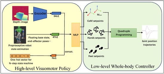 - Wang, C.; Chen, X.; Yu, Z.; Dong, Y.; Chen, K.; Gergondet, P. Robust humanoid robot vehicle ingress with a finite state machine integrated with deep reinforcement learning. Int. J. Mach. Learn. Cybern. 2024, 16, 2537–2551. [Google Scholar] [CrossRef]