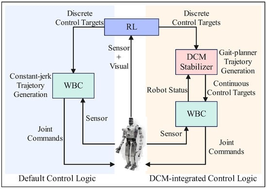 - Li, Z.; Cheng, X.; Peng, X.B.; Abbeel, P.; Levine, S.; Berseth, G.; Sreenath, K. Reinforcement learning for robust parameterized locomotion control of bipedal robots. In Proceedings of the 2021 IEEE International Conference on Robotics and Automation (ICRA), Xi’an, China, 30 May–5 June 2021; IEEE: Piscataway, NJ, USA, 2021; pp. 2811–2817. [Google Scholar]