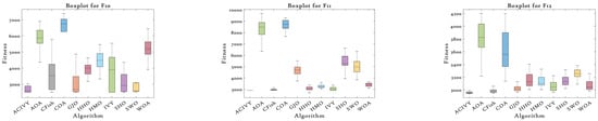 Figure 3 thoroughly reveals the statistical distribution nature and the reliability of the solution of ACIVY versus the rival algorithms on the CEC2022 benchmark functions. The boxplots display important performance metrics such as median fitness values, quartile ranges, the existence of outliers, and the overall consistency of solutions. ACIVY achieves statistical excellence in all aspects regarding medians, interquartile ranges, and the presence of outliers, showing the quality of the solution is optimal and the algorithm is very stable across all types of functions.