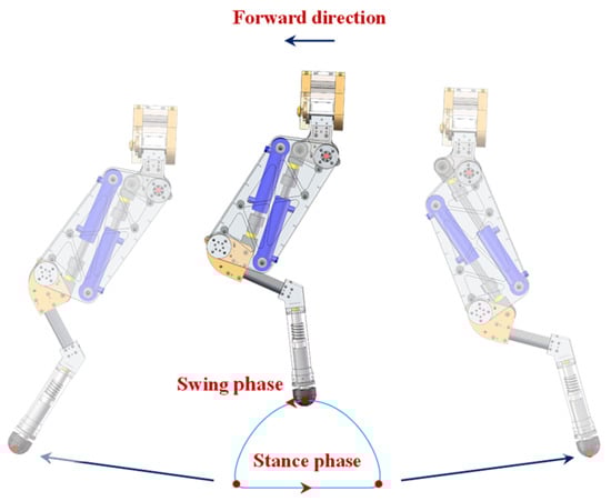A suitable foot trajectory affects the speed and stability of robot locomotion. To realize the precise joint motion of the robot, it is necessary to fully consider the constraints of the robot’s feet to meet the requirements of trajectory smoothness and the continuity of velocity and acceleration. A sixth-order polynomial fitting curve is utilized to plan the foot trajectory, thereby reducing the impact of the foot when the phase is switching. The foot trajectory in the XZ plane is shown in Figure 7, where the HHR forward direction is from right to left. The parameters and the constraints of the foot trajectory can be seen in Ref. [30].