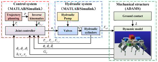 - Yang, K.; Rong, X.; Zhou, L.; Li, Y. Modeling and analysis on energy consumption of hydraulic quadruped robot for optimal trot motion control. Appl. Sci. 2019, 9, 1771. [Google Scholar] [CrossRef]
