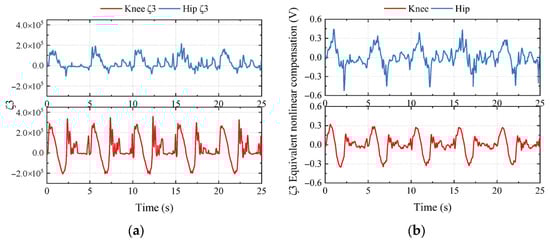 The estimator results of and its equivalent nonlinear compensation term: (a) the estimator result of ; (b) the equivalent nonlinear compensation term of .
