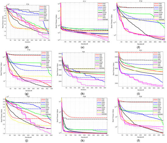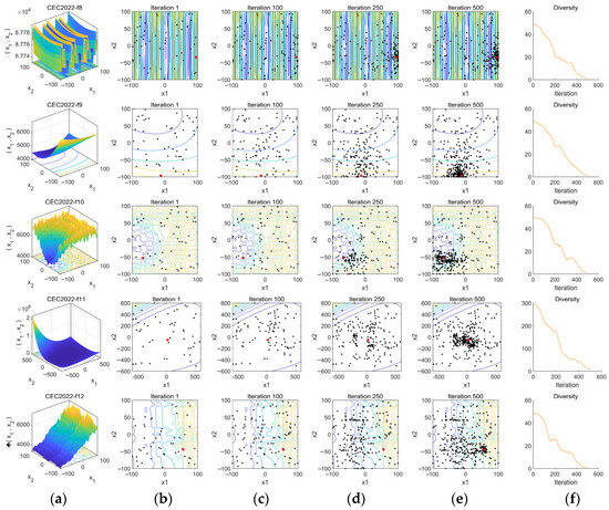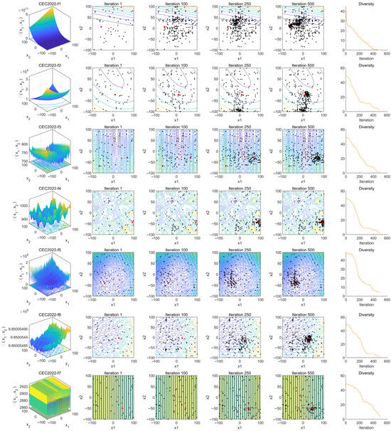 Through the application of the elite strategy in Section 3.2, MSRIME introduces some elite-characterized Other individuals during the exploration process to enhance the algorithm’s search capability in the early and middle stages. At the same time, the adaptive search strategy optimizes the updating method for the Hard population, allowing it to adaptively increase the search range of the population individuals. The simultaneous application of these two strategies, working together in harmony, can effectively improve the overall search capability of the population.