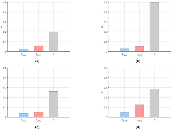 Since the MSRIME algorithm introduces additional computational complexity compared to the RIME algorithm to enhance its optimization capability, its execution time does not show a significant advantage over RIME. Across the four sets of experiments, the execution time of MSRIME remains within ±0.1 s of that of RIME, indicating a minimal difference in computational efficiency. Thus, when calculating the performance change rate (α), only optimal path length, average path length, and number of path turning points were selected as evaluation metrics. The final results are presented in Figure 18.