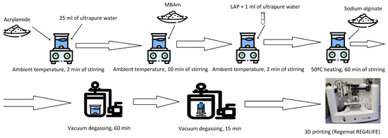 - Alginate/polyacrylamide hydrogels with varying alginate contents were successfully fabricated using 3D printing with photopolymerization, and their printability was evaluated.