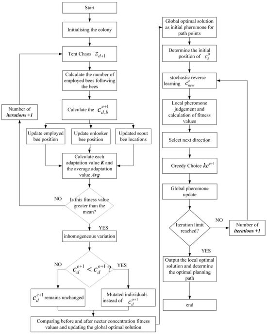 The path planning process based on the IABCBAS algorithm is illustrated in Figure 2, with the steps as follows: