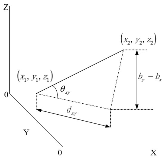 where x and y are the coordinates corresponding to adjacent elevation path points in the B-dimensional space, is the average slope of the path point relative to path point , and is the planar straight-line distance between the two path points.