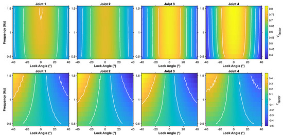 Based on the aforementioned fault analysis and dynamic model, this section conducts offline fault data collection based on the dynamic model to construct the lookup table for Equation (1). By setting tail oscillation frequencies Hz and locked joint angles , systematic simulations were performed for different joints.