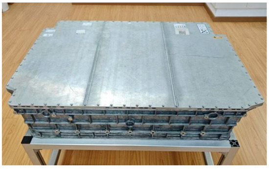 To validate the proposed method for unfastening and moving screws, experiments were conducted on the disassembly of an EoL battery from a hybrid EV. Figure 7 shows a photograph of an EoL EV battery. The battery mainly consists of screws, an upper housing part, a dehydration box, a BMS, battery modules, a lower housing part, metal copper bars, a battery filter, copper bar connectors, metal bars, a fuse, and so on. There are 74 screws with a size of M5 on the upper part of the housing, which can be disassembled using the human–robot collaborative disassembly cell in Figure 1.