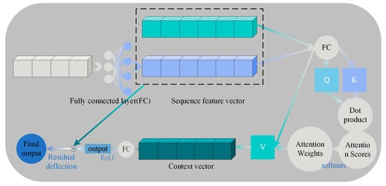 Finally, the weighted values (context vectors) are passed through a linear layer for feature fusion and the ReLU activation function is applied. At the same time, the fused features are summed with the original input x in order to achieve residual connectivity.