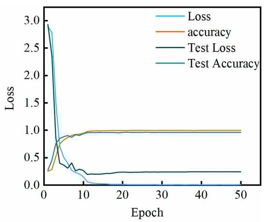 A comparison was made among four model groups: “VGG only”, “LSTM only”, “VGG+LSTM (without CAM)”, and “VGG+LSTM+CAM+FRIM”, with the following findings: VGG only: It performs well in static action classification, but the accuracy of dynamic intention prediction declines. LSTM only: It is sensitive to noise, and the lack of frequency domain information leads to classification confusion. VGG+LSTM (without CAM): Feature splicing results in overfitting, and the accuracy of the validation set fluctuates significantly. VGG+LSTM+CAM+FRIM: The model’s robustness and accuracy are significantly improved through attentional filtering. Figure 9 shows the changes in accuracy and loss of the VGG-LSTM algorithm.