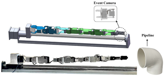 To address this issue, Henri Rebecq et al. [4] designed the event camera simulator ESIM. Building on this, Daniel Gehrig et al. [3] introduced frame upsampling technology into this framework, allowing models trained on synthetic event data to better generalize to real event data. Although these methods offer potential for applying event cameras to pipeline defect detection, whether the model can preserve the advantages of event cameras in low-light conditions remains a critical issue. Furthermore, beyond visual perception, ensuring that a pipeline inspection robot can navigate a collision-free trajectory for safe insertion into the pipeline constitutes an additional significant challenge. Currently, pipeline robots have been developed in various structures and configurations [5,6,7]. These technologies offer significant advantages in improving detection accuracy and reducing labor costs.