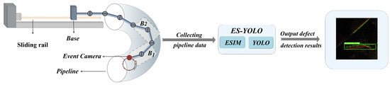 Overall workflow of the pipeline defect detection method based on the ES-YOLO.