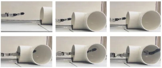 To validate the practicality and feasibility of the proposed pipeline defect detection system, physical experiments were conducted on both steel and acrylic pipelines, as illustrated in Figure 16. In each pipeline environment, the NMPC optimization algorithm was employed to compute collision-free configurations and generate corresponding motion trajectories.