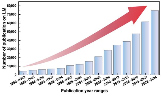 Research trends in the field of LM materials are illustrated by the number of publications per year (Data from the Web of Science).