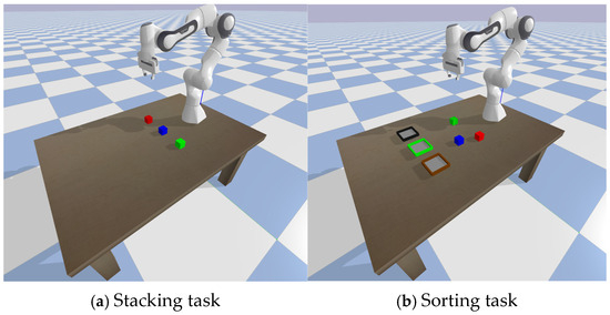 - Nasiriany, S.; Liu, H.; Zhu, Y. Augmenting Reinforcement Learning with Behavior Primitives for Diverse Manipulation Tasks. In Proceedings of the 2022 International Conference on Robotics and Automation (ICRA), Philadelphia, PA, USA, 23–27 May 2022; pp. 7477–7484. [Google Scholar]