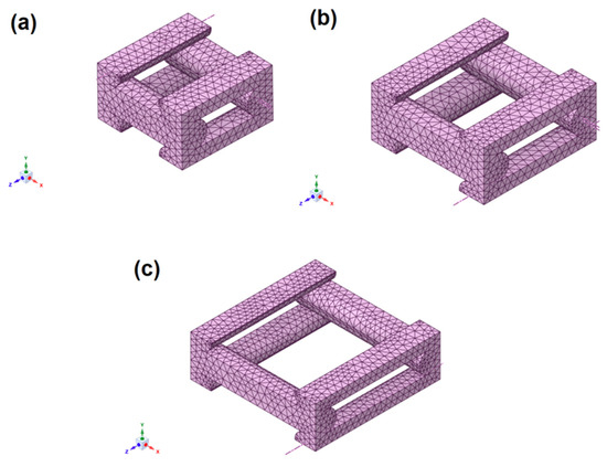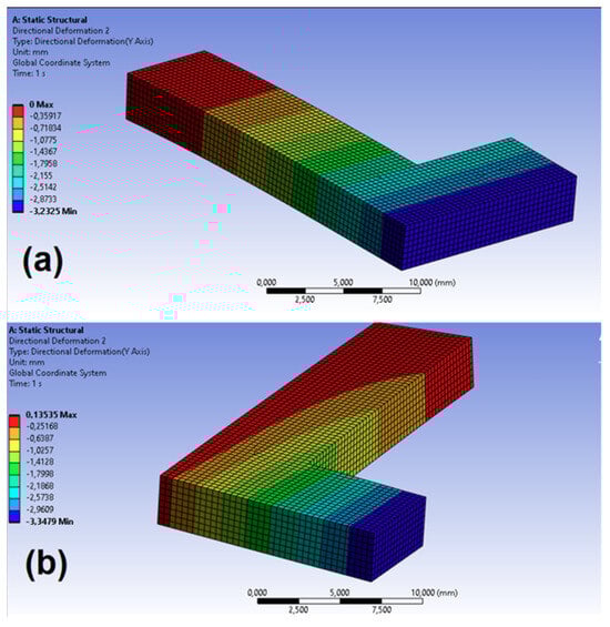 where is the reaction force and is the loaded surface area. This procedure was repeated for all components of , applying controlled strain states [48]. The displacement conditions for each case are summarized in Table 2.