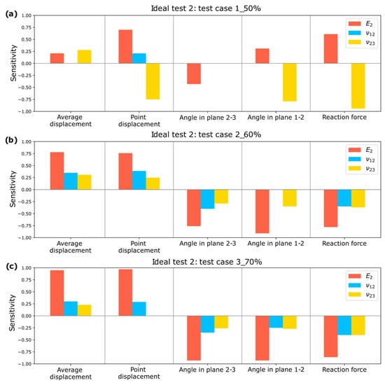For Test case 3_70%, was estimated at 169.35 MPa, showing a −3.23% deviation, which confirms the high accuracy of the estimation. varied by 3.41%, which is a better agreement compared to Test case 2, while presented the largest deviation (−10.03%), further emphasizing the challenges in accurately predicting Poisson’s ratio.
