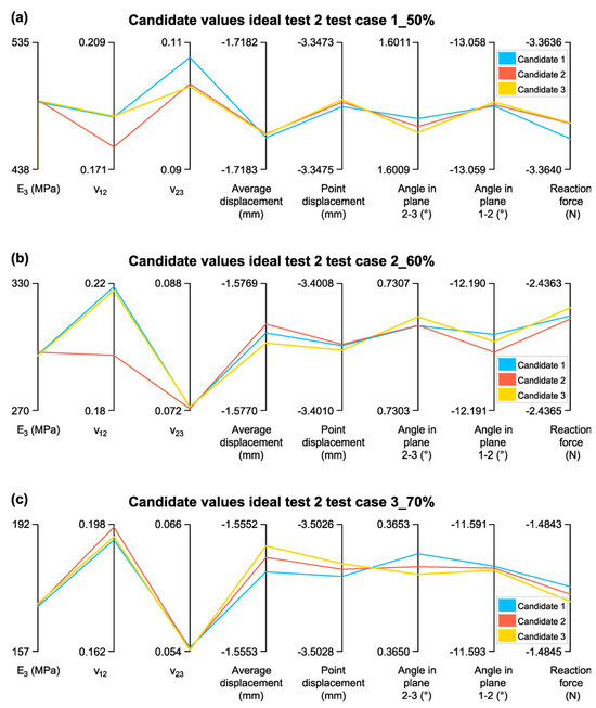 Finally, Table 11 presents the percentage differences related to Candidate 1 for the material’s mechanical properties obtained through virtual testing and topology optimization compared to a homogenization method.