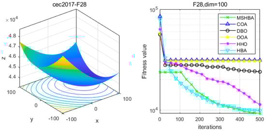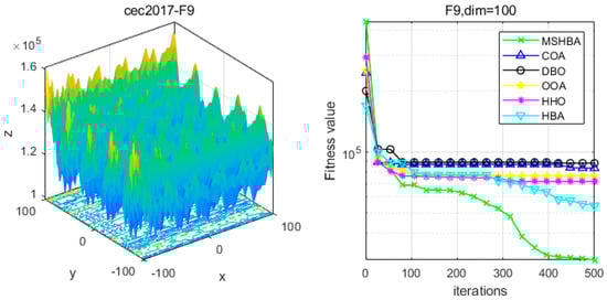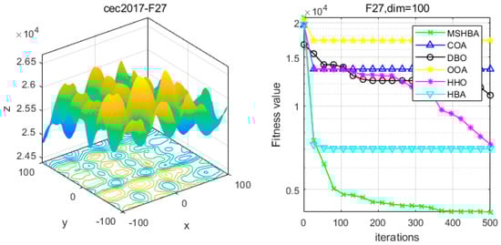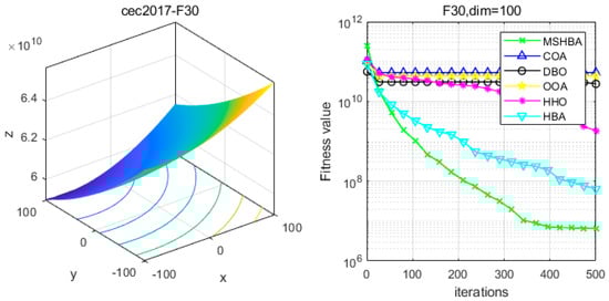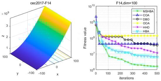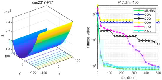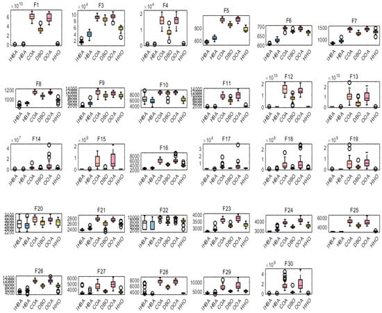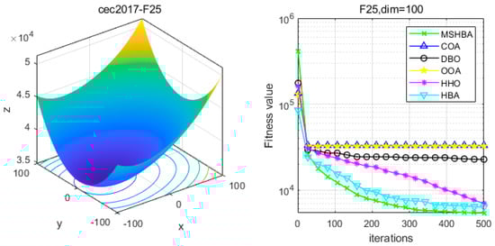 The experiments were conducted on the Windows 10 operating system. All algorithms were implemented using MATLAB R2023b. The performance of the IHBA was compared with that of recently developed metaheuristics to evaluate its effectiveness in global optimization. The numerical efficiency of MSHBA was evaluated using 29 benchmark functions from CEC 2017 and four engineering design problems. To validate the performance of MSHBA, the results were compared with four state-of-the-art optimization algorithms: COA [30], DBO [31], HHO [32], and OOA [33]. Among the selected competitive algorithms, COA, DBO, HHO, and OOA are swarm intelligence algorithms widely recognized in the metaheuristic literature. On the other hand, COA, DBO, HHO, and OOA are relatively recent algorithms that have demonstrated promising performance in addressing the optimization problems considered in this study. These methods were selected to include both well-established and recently proposed algorithms, ensuring a fair comparison to demonstrate the overall effectiveness of the proposed approach. For a fair comparison, a maximum of 500 iterations was set for each optimization problem.