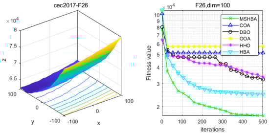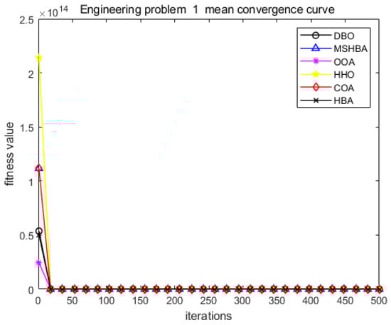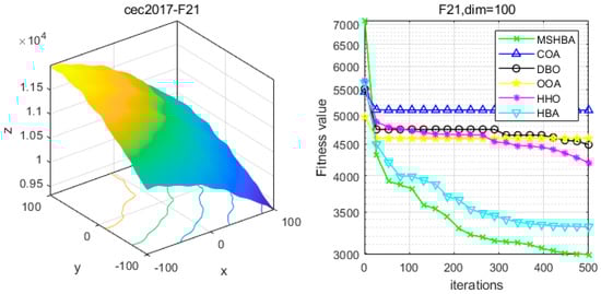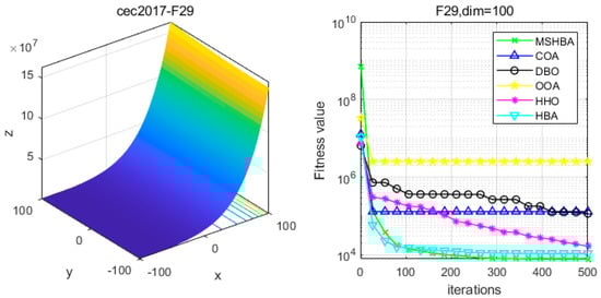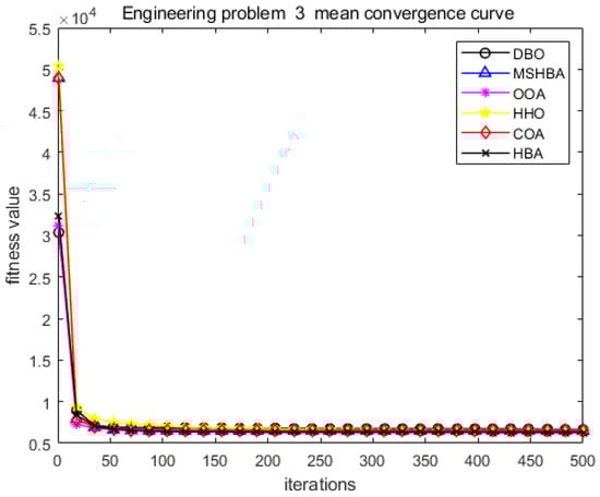 The Multi-Strategy Honey Badger Algorithm (MSHBA) demonstrates superior convergence performance compared to the other five algorithms—COA, DBO, OOA, HHO, and HBA—on 29 benchmark functions, including F1 and F3–F19, F21–F30 (Figure 3, Figure 4, Figure 5, Figure 6, Figure 7, Figure 8, Figure 9, Figure 10, Figure 11, Figure 12, Figure 13, Figure 14, Figure 15, Figure 16, Figure 17, Figure 18, Figure 19, Figure 20, Figure 21, Figure 22, Figure 23, Figure 24, Figure 25, Figure 26, Figure 27, Figure 28, Figure 29, Figure 30 and Figure 31). Specifically, MSHBA outperforms COA, DBO, OOA, and HHO on functions F3, F20, and F29. Overall, the improved Honey Badger Algorithm exhibits significantly enhanced convergence behavior compared to the original HBA.