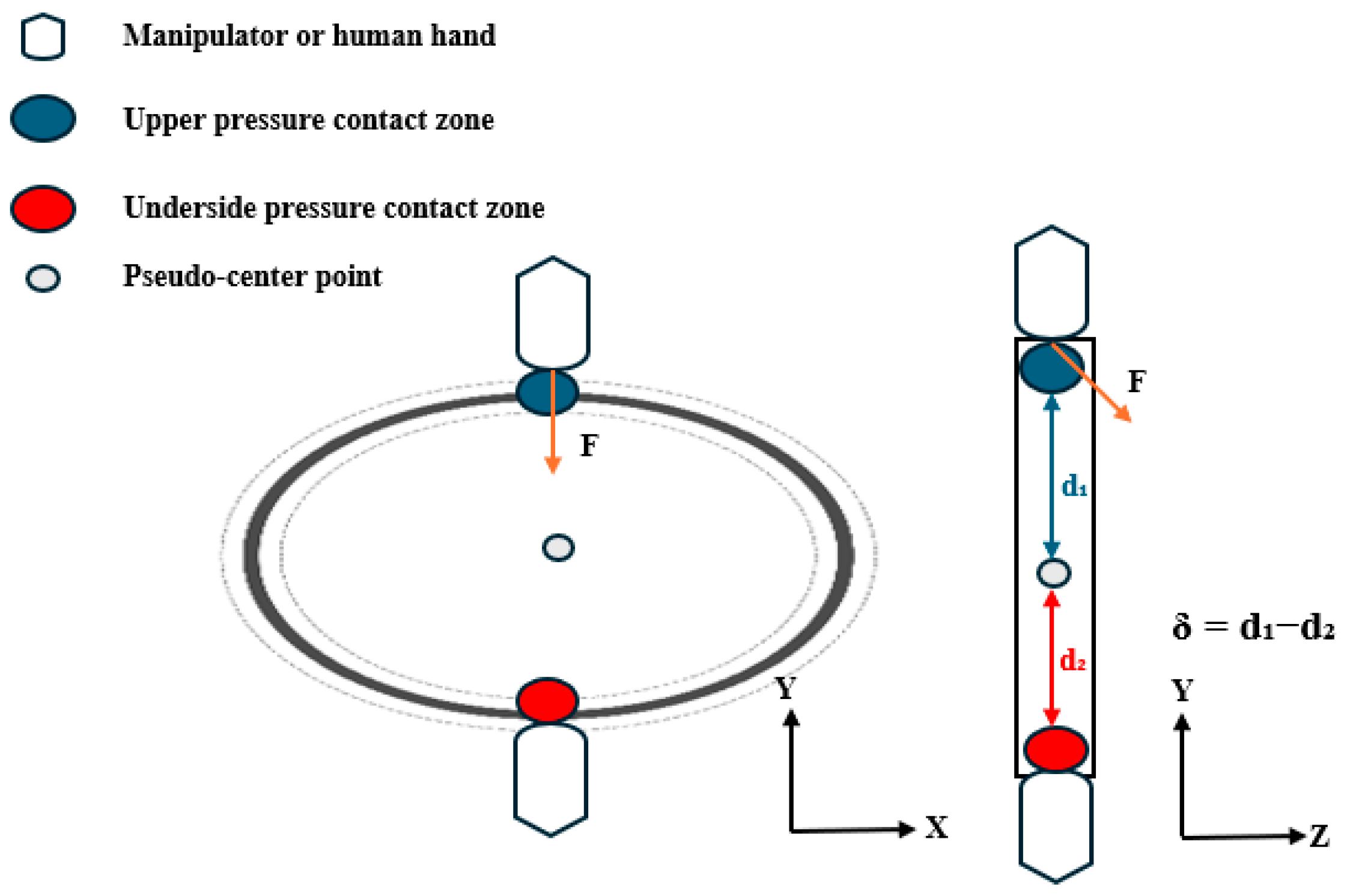 and denote the coordinate positions of the upper and lower contact pressure center points, respectively, while represents the system-defined pseudo-center reference point.