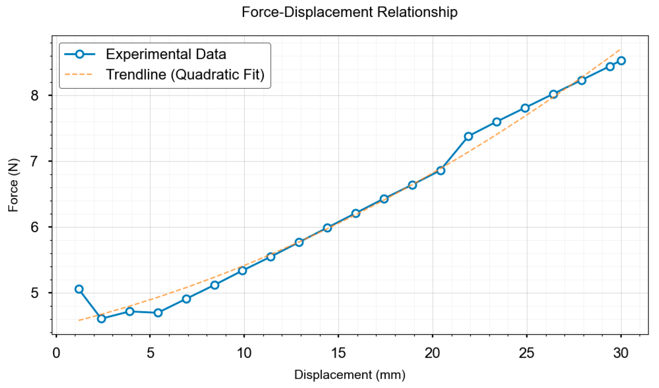 The Mooney–Rivlin model was selected for its capability to accurately characterize the deformation behavior of rubber-like materials, where