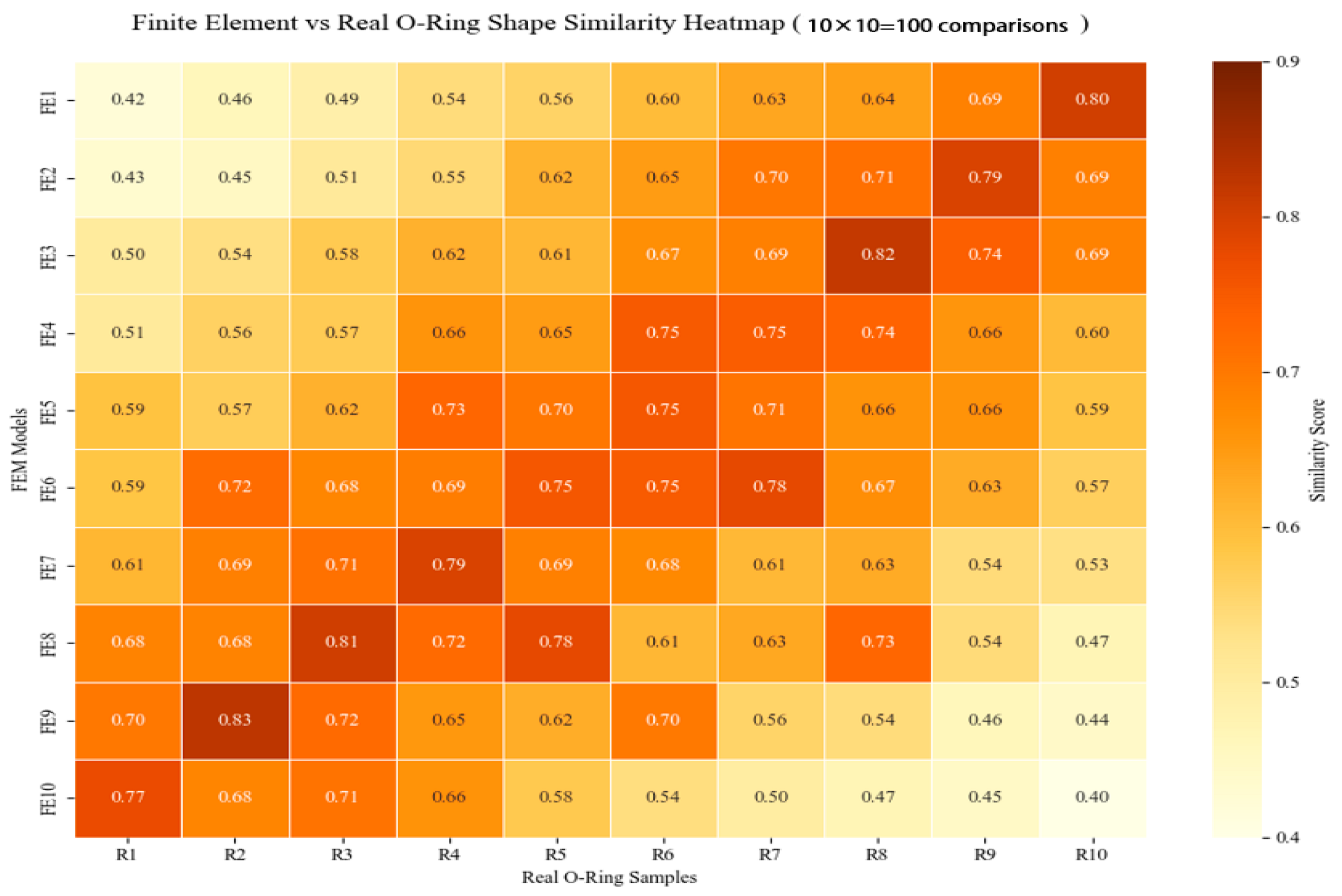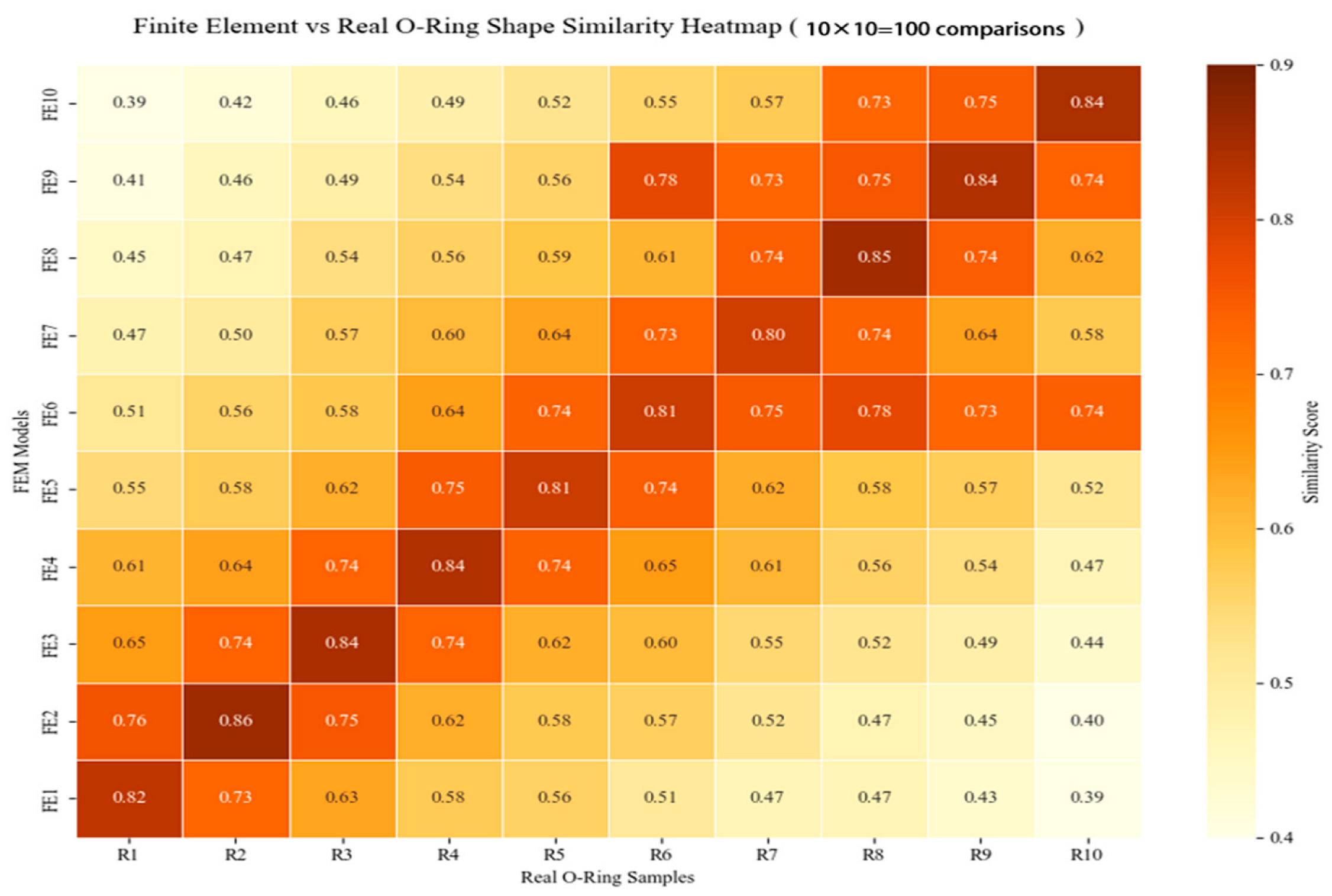 High similarity scores indicate geometric deformation consistency between the real frames and FEA simulations, thereby providing foundational evidence for establishing cross-modal mapping. When the geometric similarity exceeds the thresholds, real-world deformations spatially correspond to the FEA predictions, enabling accurate stress/displacement field transfer from simulations to physical states.